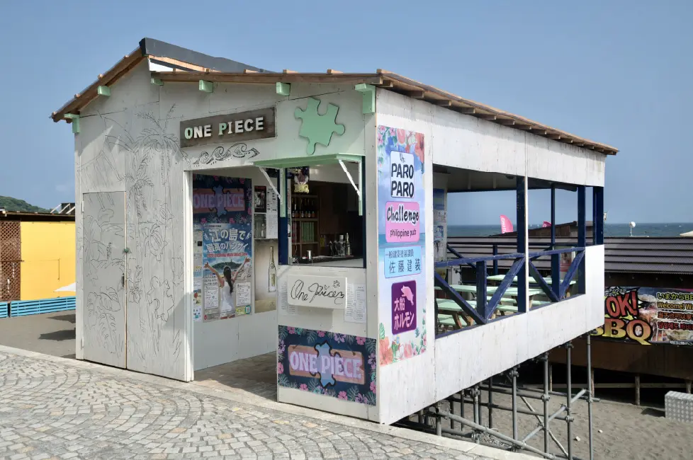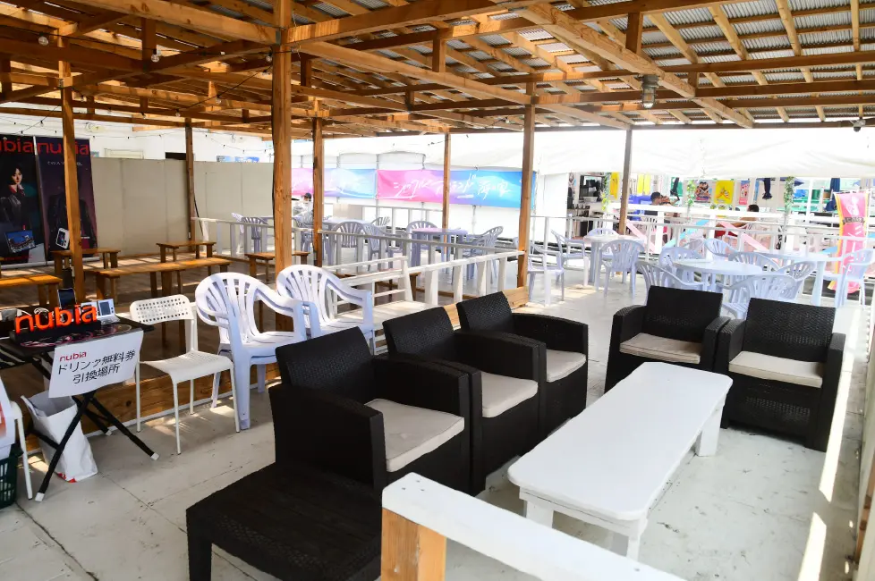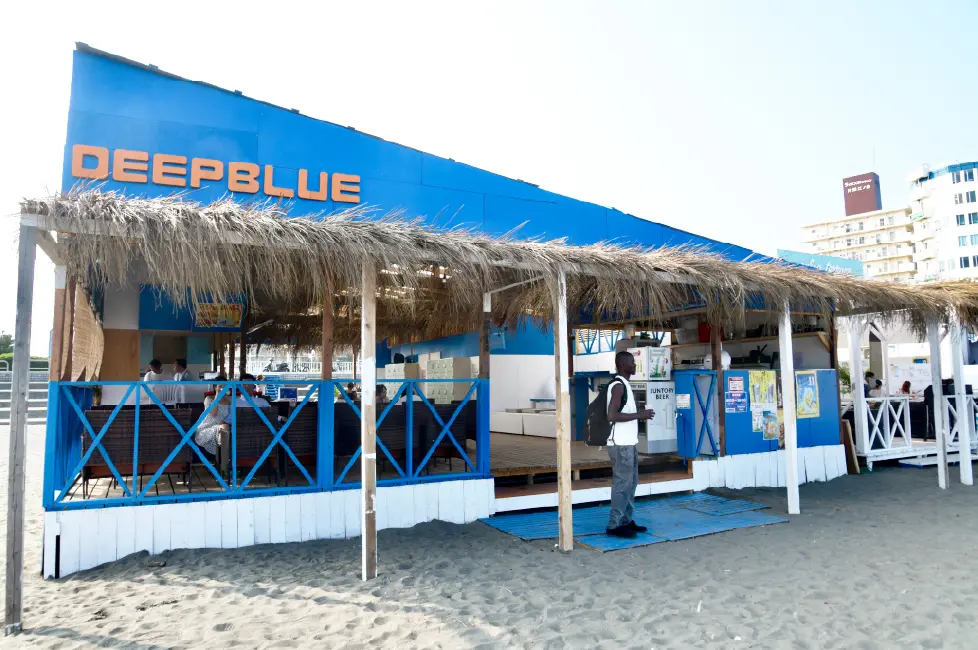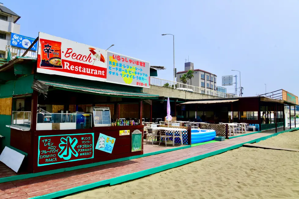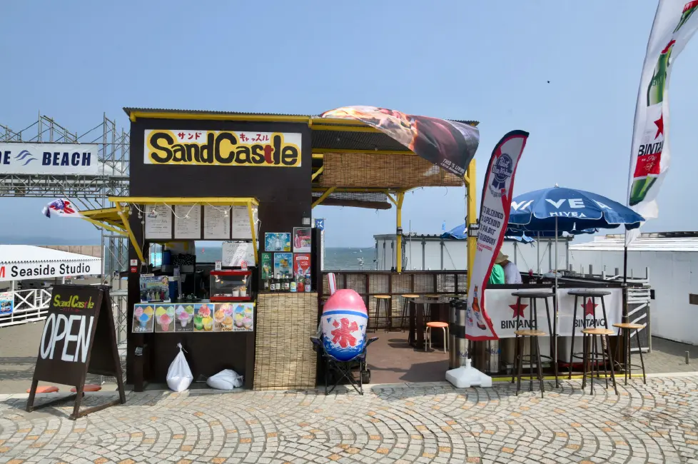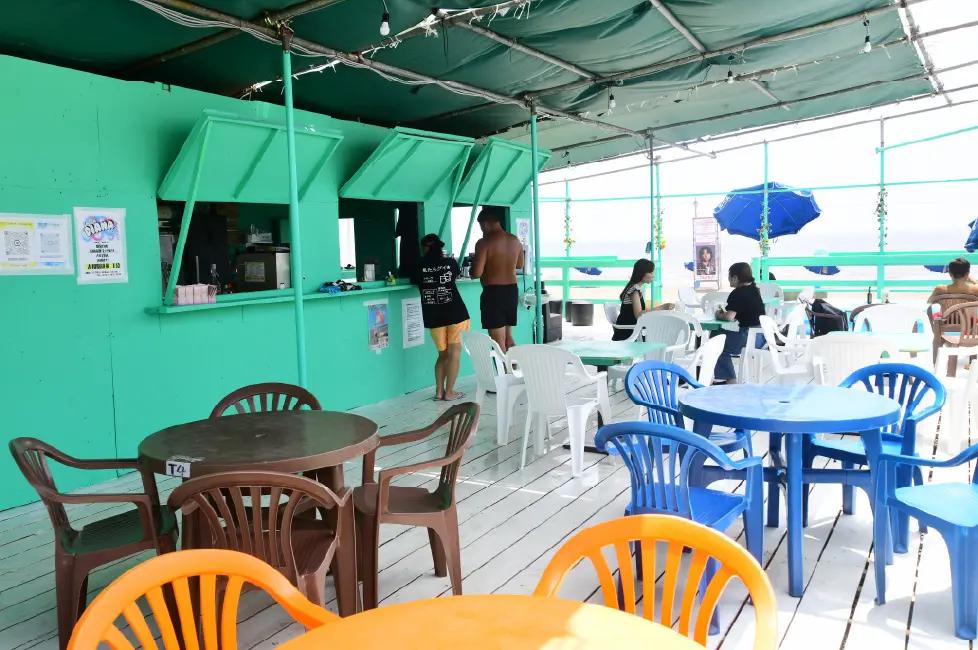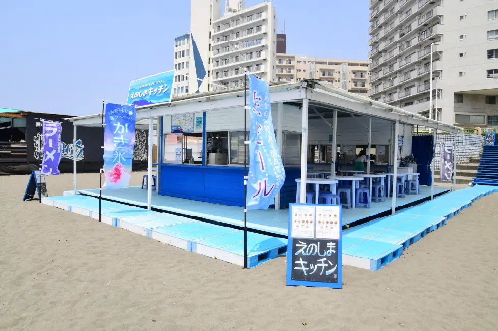 江ノ島では珍しいフードコートスタイルの海の家!BLUEの海の家が目印。