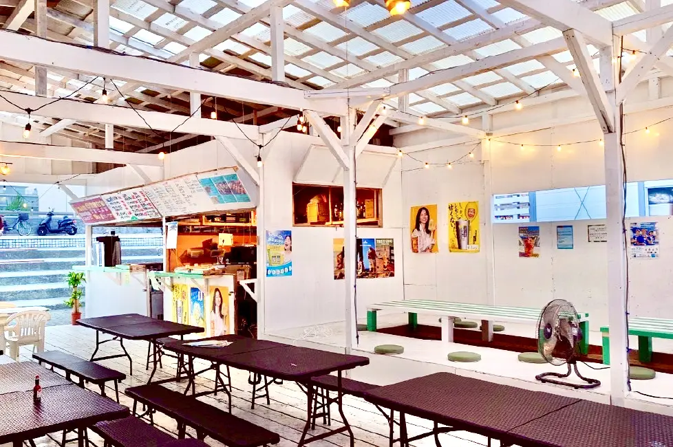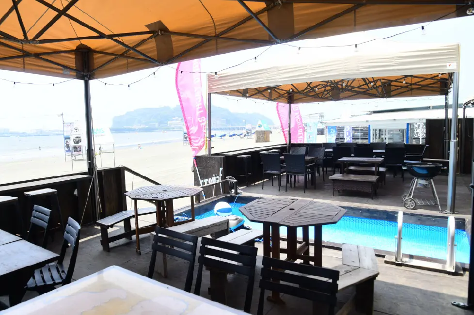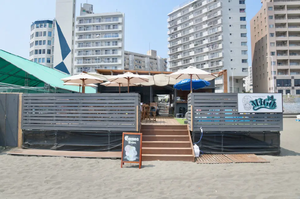 東浜海岸の最南端に位置するため、誰にも邪魔されず、目の前の江ノ島が一望できる最高な立地。お酒が充実しているためそれに合わせたメニュー揃えが特徴だ。このお店の最大の見所は、7、8月に開催予定の江ノ島花火が鑑賞できる特等席があること。東浜では1番の花火スポットだ。店内は広いテラス席と座敷の席が用意され、日中はファミリーの方々が楽しめ、夕方から仲間が集い陽気に飲める。シャワールームもたくさんあるので、団体客も不便なく利用できるだろう。
