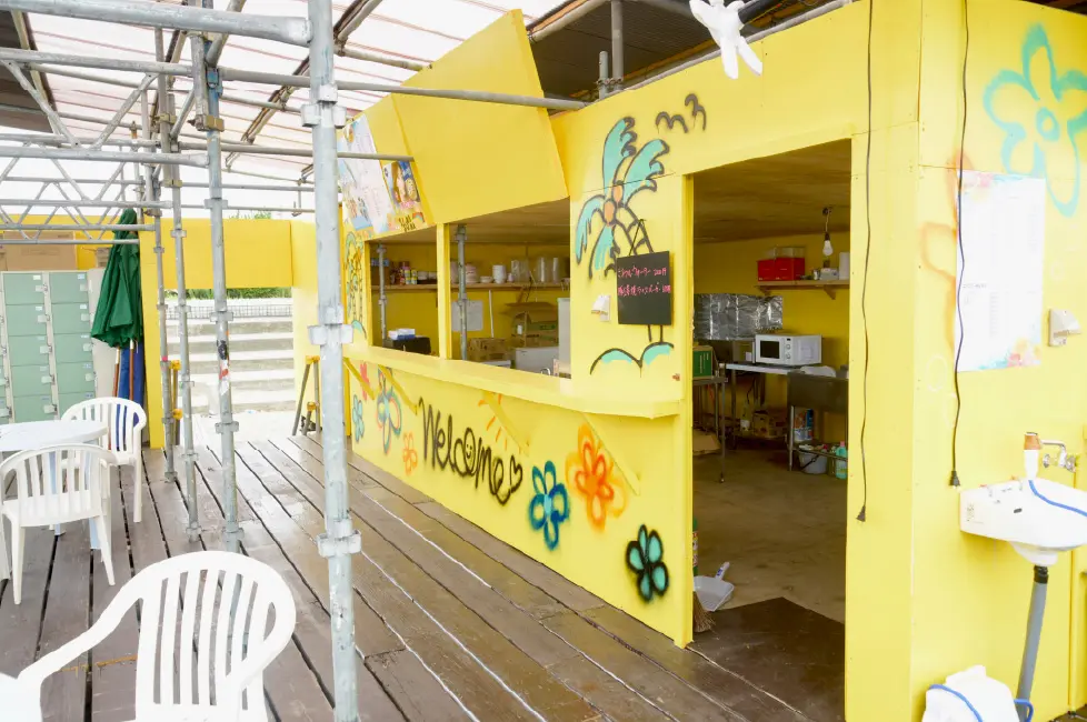この海の家は、地域密着型の建設会社さんに建設してもらいました。今年で2度目の夏になりますが、私たちができることは、建築時と解体時には、業者さんとみんなで徹底的にゴミや釘を拾うようにすることだと思っています。