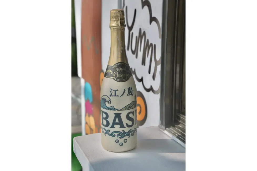 江ノ島BEASの一押しは、冷凍庫でキンキンに凍らせたジョッキに注ぐ生ビール。海と江ノ島を意識してデザインをしたオリジナルシャンパンが人気。