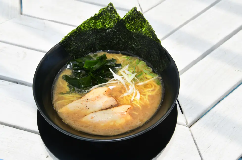 名物のラーメンはナルト、シナチク、海苔がトッピングされている昔ながらのノスタルジアな1杯。琥珀色のスープは滋味深く、トッピングのチャーシューは職人仕込みの特注品。 他に「まぜそば」(1000円)がオススメ。温麺にタレを混ぜ、チャーシューと盛りたくさんの野菜が丼を彩る。また定番メニュー「焼きそば」(900円)も人気の商品。